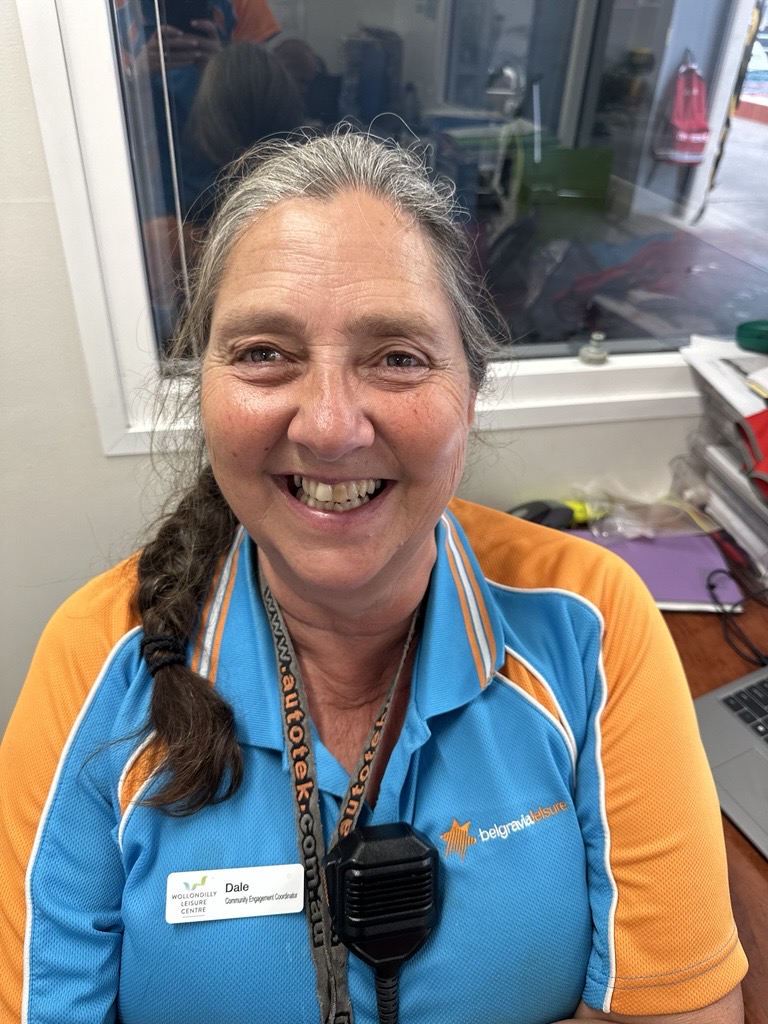 Venue Manager Hayley Sherriff describes Dale as “the heart of Wollondilly Leisure Centre. Known for her energy and commitment, she starts her day at 5am, managing duties and coordinating the team with enthusiasm and care.”